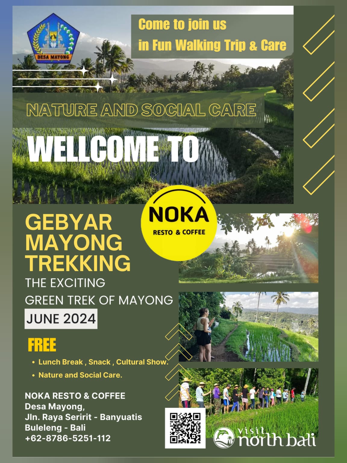 Dive into an unforgettable journey you never knew you needed. The Mayong Trekking is far more than a hike, it’s a thrilling exploration to North Bali’s hidden gem - Mayong Village. Enjoy the serene beauty of nature, breathtaking lush green landscapes and get enchanted by the cultured arts presented by the vibrant young folks.